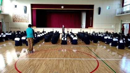 願書の出願時期が迫り、進路担当の先生より現状や今後の流れの説明があり、3年生はみな真剣に話を聞いています。