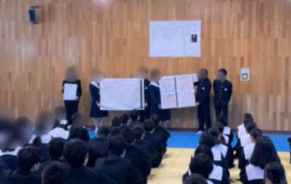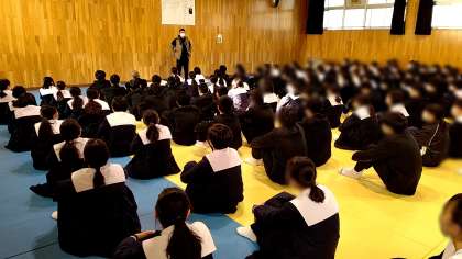 先日とった生徒の意識調査の結果を委員長が公表しました。その結果を受けて、学年の先生より、「来年の今頃はみんなの多くは受験真っ只中。最近気持ちが緩んできているので気を引き締めて。」というお話がありました。