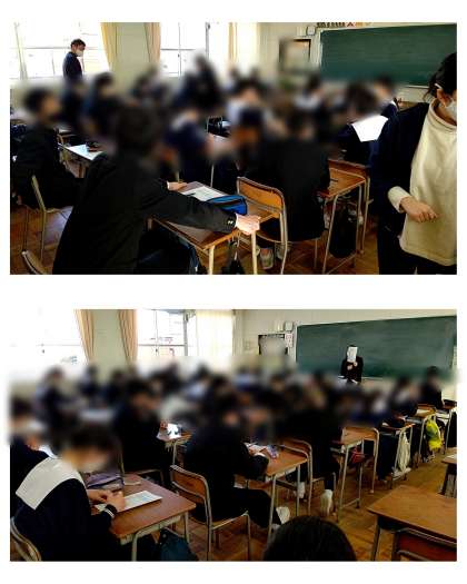 総合の取組みで「私は他者からどう見られているのだろう?」と他己紹介を行っています。自己評価とどれくらい同じなのか、違うのか班の中で回して記入した自分のプリントが返ってくると、生徒たちはそれを興味深そうに見ていました。
