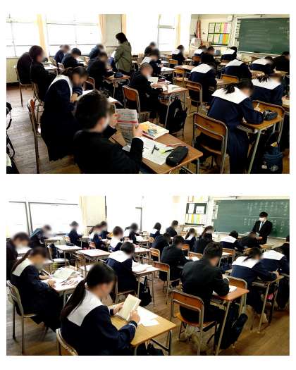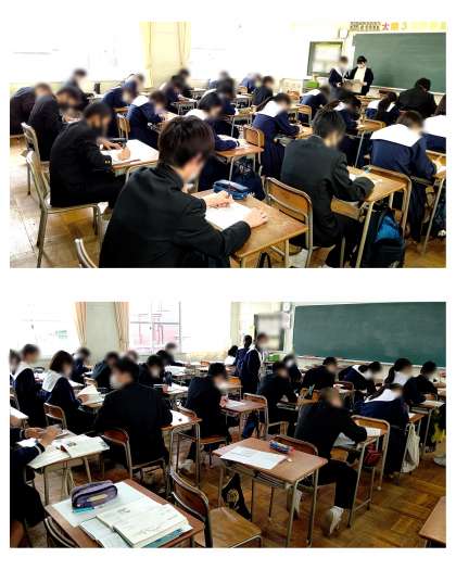 各クラス、文集の仕上げをしたりテスト勉強をしたりしています。その一方で、担任の先生と個別の教育相談を行っています。