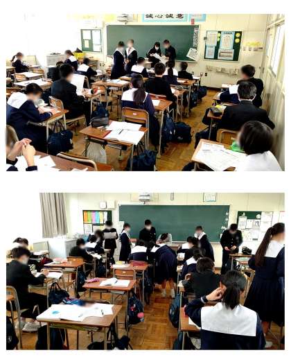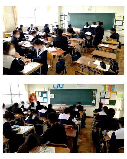 本日の総合の授業で、公立高校受験に必要な「自己申告書」の下書きをしたり、入試問題に取り組んだり、卒業文集の原稿作成に取り組んだりしています。教室の風景が、3年生の卒業へ向けた雰囲気になってきています。