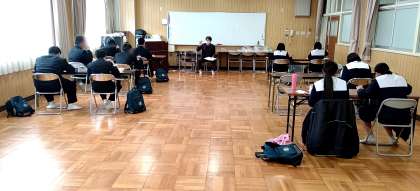 本日、特別選抜試験受験をする生徒は午前中の授業を終え、給食を取りながら本日の打ち合わせを行い、午後から出願へ向かいます。天候が心配されましたが、出発するころには雨も止み空も明るくなってきて一安心です。