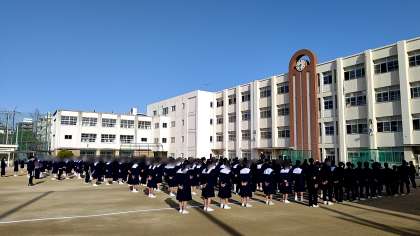 全校集会の様子校長先生より、中学生の時に、「365日毎日日記を付けることをしてごらん」と恩師に言われた。実際に日々をふり返って毎日日記をつづる中で、いつの間にか自分の毎日を意味のある日々にするのは自分次第だということに気づいた、というお話がありました。