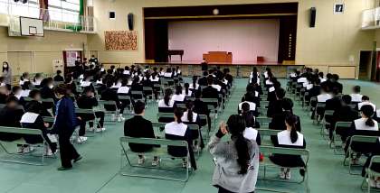本日より3年生が体育館にて卒業式の練習を始めました。少しいつもより緊張した面持ちで真剣に練習に取り組んでいます。