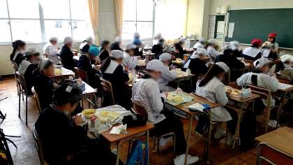 互いに向き合って楽しくおしゃべりもしながら給食を楽しめる日が一日も早く来てほしいですね。