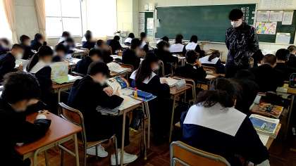 谷川俊太郎氏「朝のリレー」を鑑賞し、対句など表現技法について学習しています。