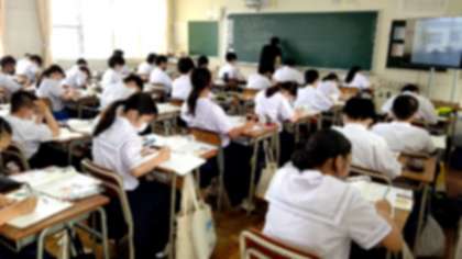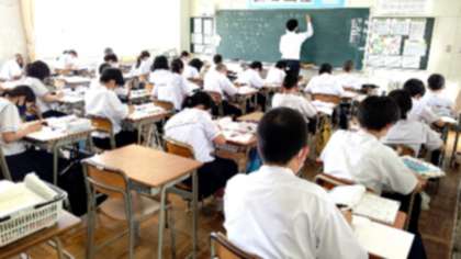 教育実習生による授業。「素因数分解」について学習し練習に取り組んでいます。