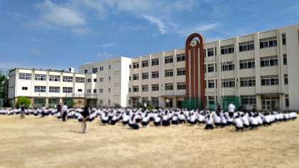 梅雨にも関わらず初夏のような陽気となった中、生徒たちは今朝も元気に全校集会を行っています。