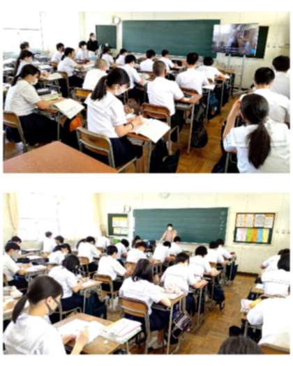 ある都市について解説されている動画を視聴して、内容理解に取り組んでいます。日本語や英語の混じった、各々独自の方法でメモを取りながら真剣に聞き取っています。