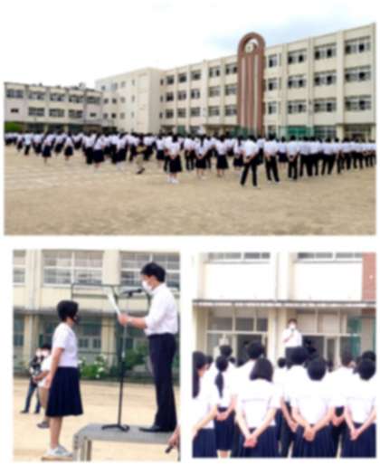6月15日(火) 全校集会 公開日 2021/06/16 更新日 2021/06/16 校内の様子 全校集会の様子 大阪市春季総体 柔道の部(女子階級別)で優勝した生徒の表彰がありました。 いいね(0)