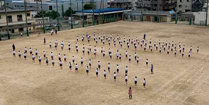 本日午後の授業で、3年生は体育大会の学年練習を行っています。