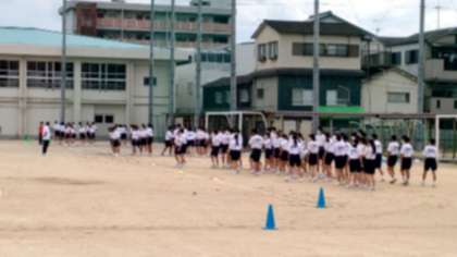 午後の授業で体育大会の学年練習をしています。今年度は入場行進がないので、本日はラジオ体操などを中心に練習を行っています。