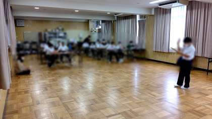 放課後、1、2年生では舞台発表の役者オーディションを行っています。感染症対策として声を出さないで演技するなど工夫しながら行っています。