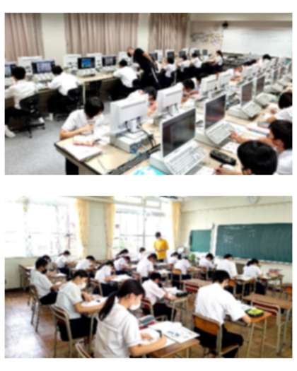 オンラインで小テストをするための練習をしたり、音声を聴いて内容に合うイラストをその順序に並べかえる活動をしています。