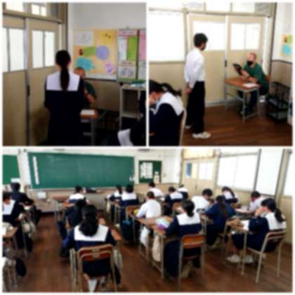 避難訓練を題材にした教科書の内容から、一人ひとり暗唱テストをしています。