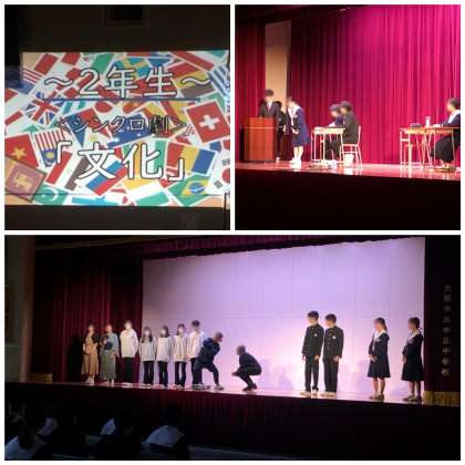 英語のスピーチに続いて、2年生の舞台発表を行っています。