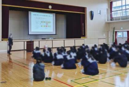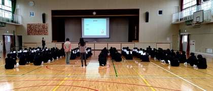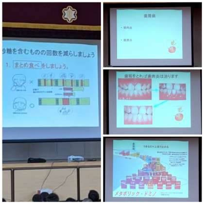 1年生で歯と口の健康教室を行い、口腔内を清潔に保つことがいかに大切か学習しています。