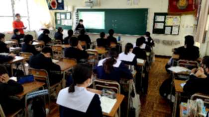 地理的な分野においてこれまで学習してきたことを プリント教材を使って復習しています。