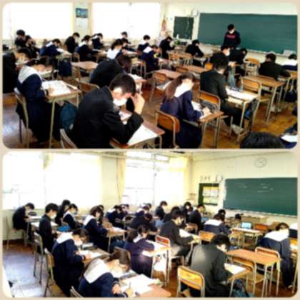 本格的に動き出す時期になりました。一人ひとり自己申告書の下書きをしています。これまでの3年生と少し違うのは、自分たちのタブレット端末を使って進路を希望する高校の情報をインターネットで調べたり、各高校のアドミッションポリシーを見ながら推敲できるところです。