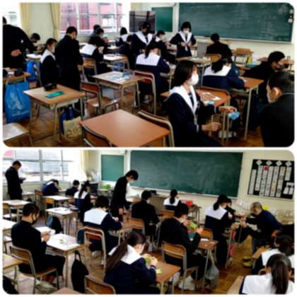 本日の午後、2年生では3月に卒業する3年生へ送る記念品作りをしています。一人ひとり丁寧に、心がほっこりするような記念品が出来上がってきました。