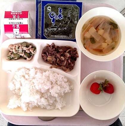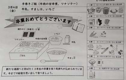 3年生は、本日が中学校最後の給食となりました。これまで毎日のように温かくおいしい給食を提供するために関わってくださったみなさんに感謝しながらいただきました。