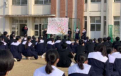 生徒たちがつくる「卒業式」、3年生を送る会。毎年体育館で映像を観て中学校生活3年間を振り返ったり、在校生による卒業する3年生への感謝の気持ちを込めたメッセージが披露されたりしていますが、昨年度に続き、今年度も特に入試を控える生徒たちへの配慮から短縮した形で行っています。