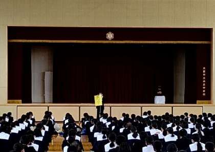 校長先生より「恩送り」のお話、教室に戻っての学級活動の様子(1年2組)です。
