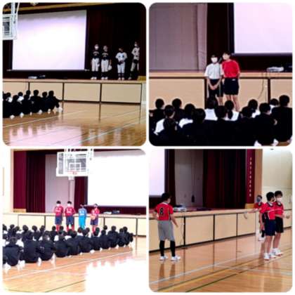明日からの部活動仮入部期間(〜4月21日まで)を前に、上級生が各々の部活動について1年生に紹介しています。