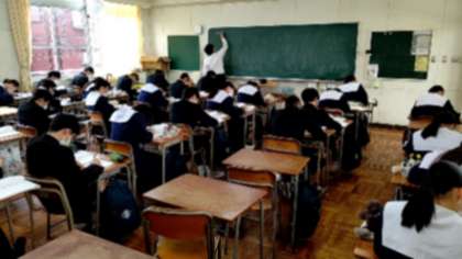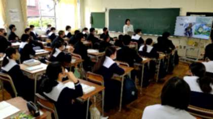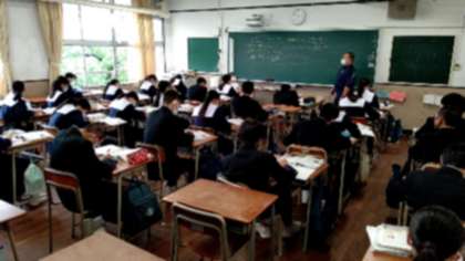 新しく家庭科を教えてくださることになった先生による、自己紹介や授業のオリエンテーションを聞いています。