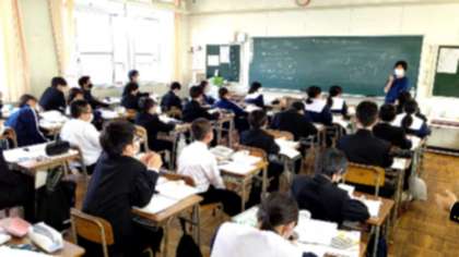 話し言葉と書き言葉の違いについて比べる単元で生徒一人ひとりが「一文読み」をしています。