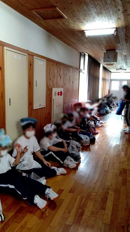 フォトラリーを終え、野外学校へ戻ってきました。夕食後の夜の集いで行われる結果発表を楽しみにしながら、一日の汗を流そうと入浴タイムです。