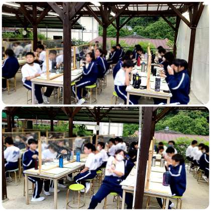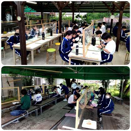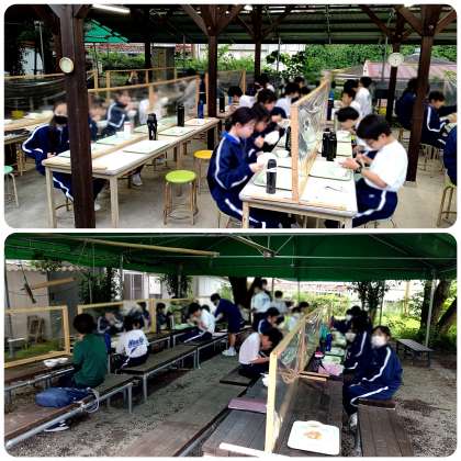 美味しい夕飯。おかわりだけでこの長蛇の列です。黙食でもなんだか楽しそうです。