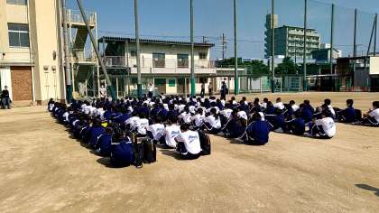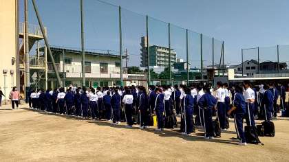 予定よりも10分ほど早く帰校し、帰校式を行っています。ケガや事故なく帰阪でき、得るものも多かった一泊移住でした。