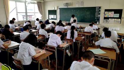 テストが返却されました。内容を振り返り、テストで得点を上げるにはどのような学習をすればよいのか解説を受けています。