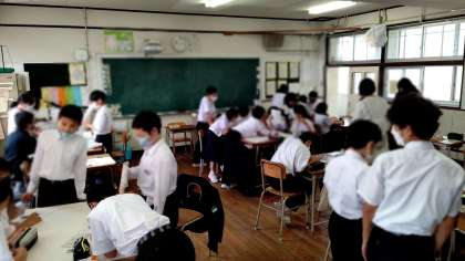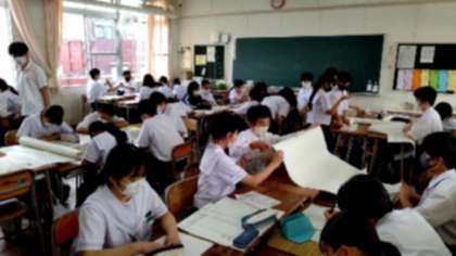 一泊移住での出来事の一部始終を載せようと、各班話題ごとに記事を書いて壁新聞を完成させようとしています。どのクラスもどの班も、どんなことが思い出に残っているのかがよくわかります。