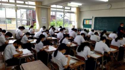 本日、3年生は初めての実力テストに取り組んでいます。