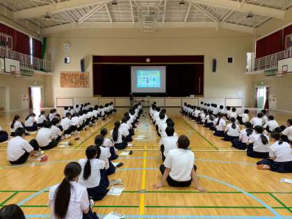 外部講師の先生をお招きして、熱中症対策として、各学年で水分補給教室を行いました。熱中症にならないためにどのように水分を補給するのが効率的なのか、また、熱中症になってしまったときにはどう対応すればいいのかなど、詳しく学習しました。