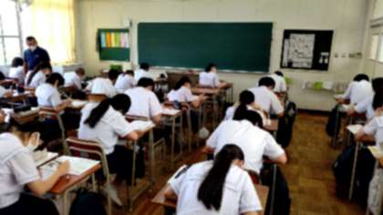 これまで学習した内容について、プリントで復習しています。