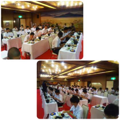 朝食の時間です。朝からとても豪華な食事、今日の活動のために、しっかりと食べています。