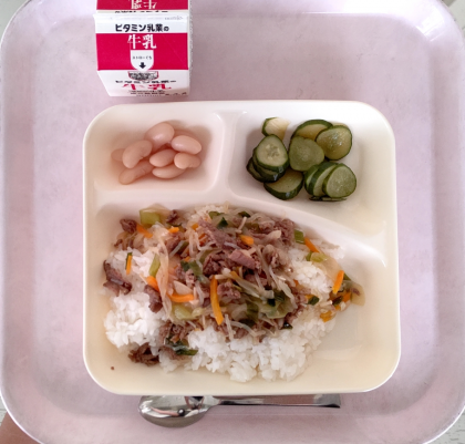 明日から懇談が始まり、午前中授業となるため、本日が1学期最後の給食です。