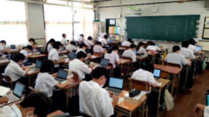 自分たちが夏休みに学んだことについて書く内容の確認などにタブレットを用いながら、一分間スピーチの原稿作成に取り組んでいます。
