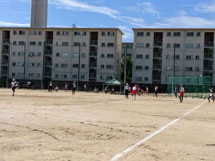 暑い日差しの中、ソフトボール部が放出中学校どの合同チームで井高野中学校と試合をしました。2回コールドで一試合目は負けてしまいましたが、昼からあと2試合あるので、頑張ってくれると思います。ピッチャー不在の中、急遽練習して投げたりして、健闘しています。