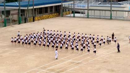 2回目の体育大会学年練習を行っています。行進や整列も息があってきました。遠くから見るととてもきれいな動きに見えます。