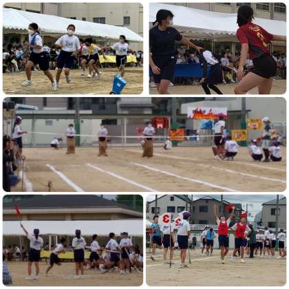 部活動対抗リレー、バラエティ競走、男子リレー、女子リレーです。どの顔にも一生懸命な表情、やりきった表情が出ています。