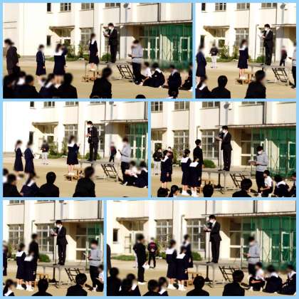 校長先生からは、これまでの生徒会や委員会活動への感謝と労いがあり、「立場が人をつくる」という言葉があるが、今与えられた役割を一所懸命行うことで様々な経験がその人をつくっていくことになる、というお話がありました。