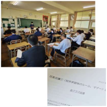 各クラスの授業の中で校外学習の班長を選出しています。それを受けて、放課後決定した班長達が班長会議を行い、今後の取組みの計画を立てています。