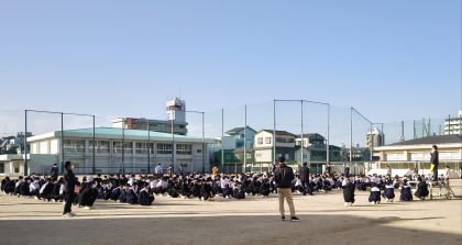 「100−1=?」と書かれた用紙を掲げ、答えはいくつでしょうかと問いかける校長先生。その答えは「0」。これは、USJでの従業員に共通した考えだそう。100人のお客さんのうち1人でも不満だったらUSJとしては、99点ではなく、0点だという意味です。働いている人が一人残らずお客さんに喜んでもらえるよう努力しないといけないということです。私たちもこの考えを見習い、全員でまとまっていつも全力を心がけることで素晴らしいことを成し遂げられると信じて頑張りましょう、というお話でした。