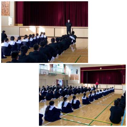 また、全校集会の校長先生のお話を受け、学年の中で一人の信用を損なう行為は、あなたが所属している団体(家族、クラス、学年、本庄中学校、等)全体にも多かれ少なかれ影響を及ぼすので注意しましょう、帰宅後も標準服のまま塾へいったり遊びに行ったりしていませんか?そのときの不要物がポケットにあったりして疑われたりたりすることはないですか?、と注意喚起がありました。