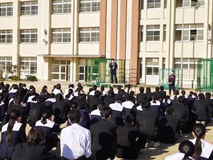 東成区区役所や消防署、消防団の皆様にご協力いただき、今後起こるであろう大規模な地震や津波を想定した防災訓練を行いました。