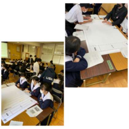 避難者の年齢や性別、国籍やそれぞれが抱える事情が書かれたカードを、避難所の体育館や教室に見立てた平面図にどれだけ適切に配置できるか、また避難所で起こる様々な出来事にどう対応していくかをゲーム感覚で模擬体験する、HUG訓練をしています。